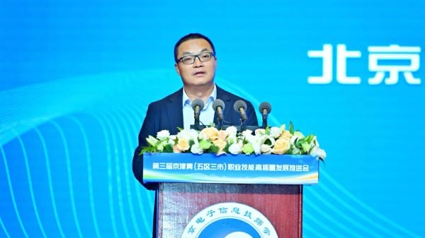 近日,第三届京津冀(五区三市)职业技能高质量发展推进会在技师学院举行。活动由北京市通州区人社局会同天津市武清区、宝坻区、滨海新区、河北省唐山市、廊坊市、雄安新区和山东省德州市人社部门共同主办,各地公共就业服务部门、社会评价机构、重点企业、高校及出版机构、职业技能培训机构等单位和学院师生代表200余人参会。雷速体育首页副总经理陈勇利出席活动并致辞。